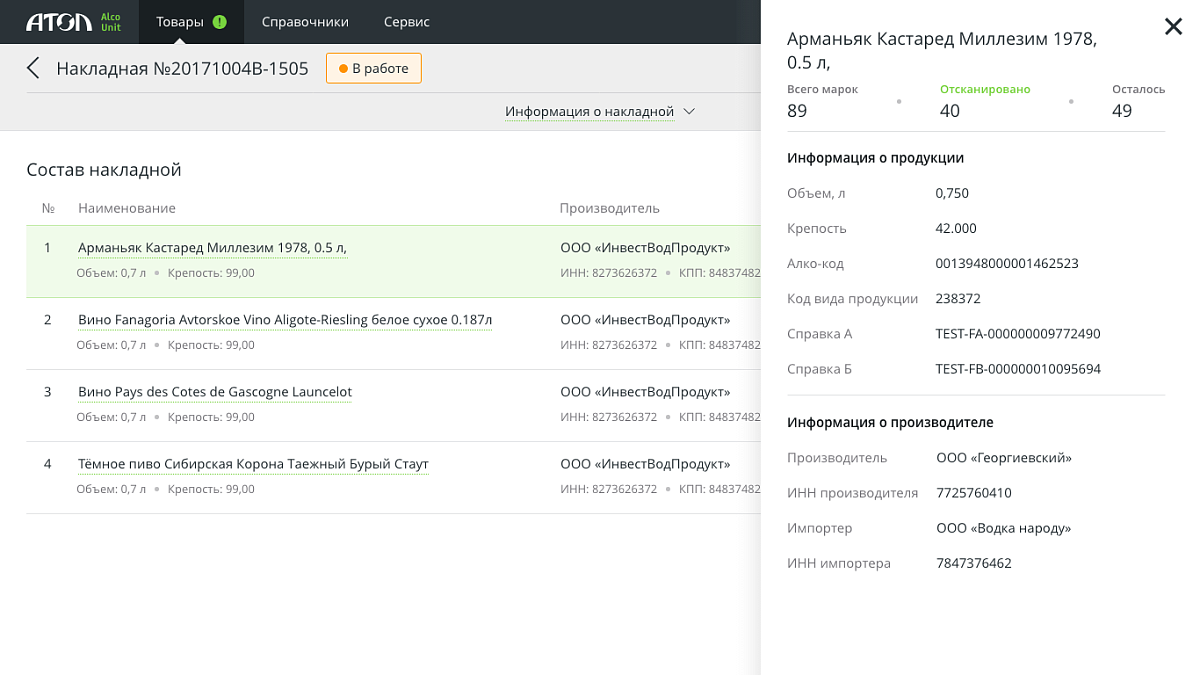 - Рабочее место администратора, где можно редактировать статусы акцизных марок.
