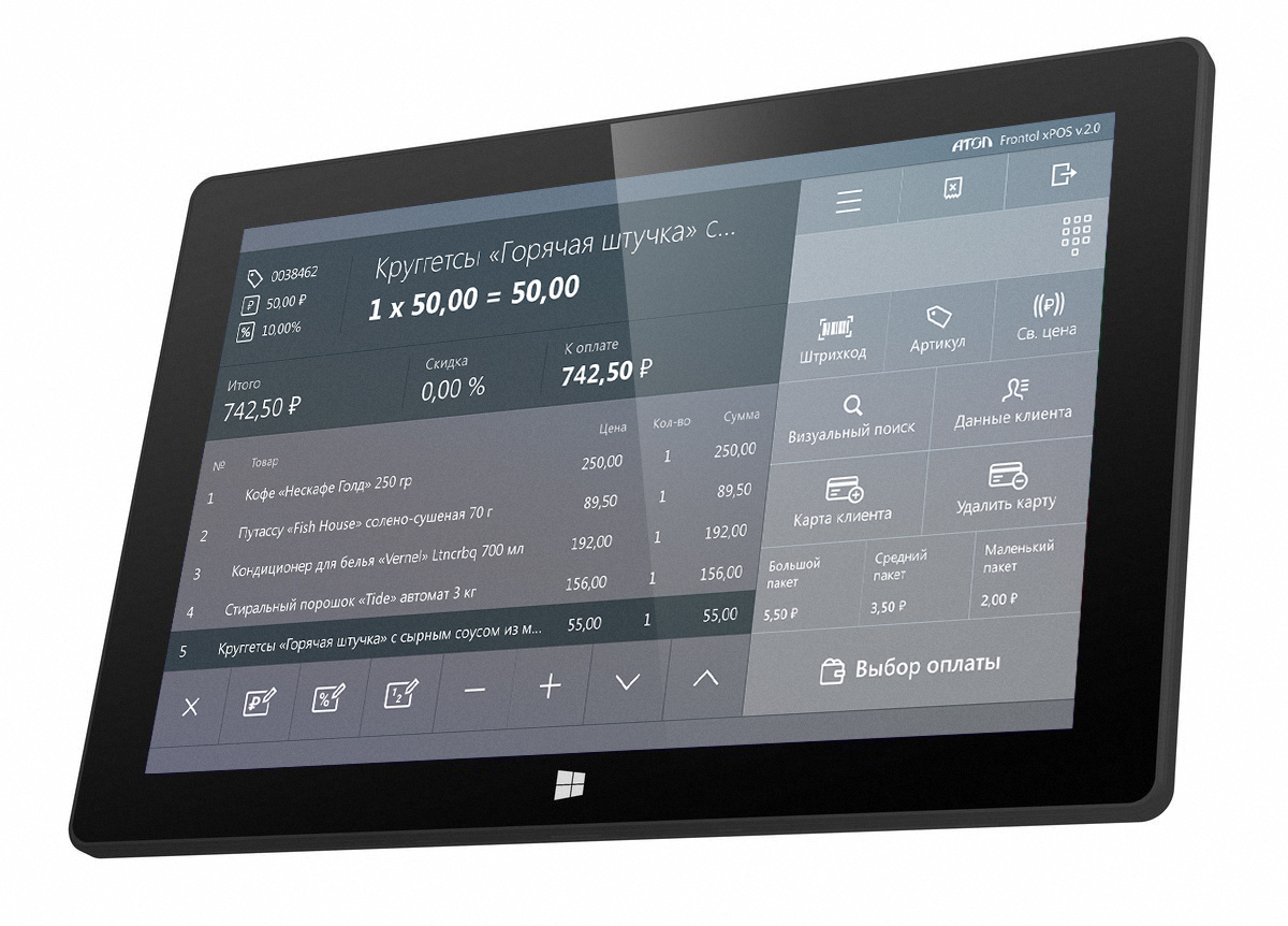 - Интерфейс Frontol xPOS 3 оснащен функцией работы с сенсорным экраном и поддержкой планшетов на базе ОС Windows 10.